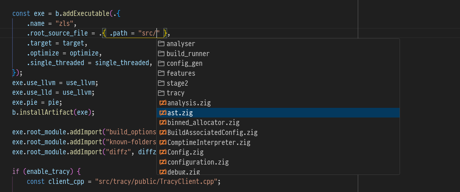 While editing a build.zig file, you will now receive filesystem completions inside string literals when typing a valid file path.