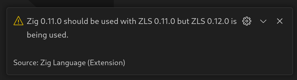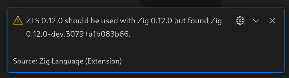 When your ZLS and Zig version are incompatible, ZLS will show you a warning: